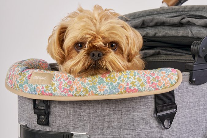 エアバギー「DOMEシリーズ」と「WIZ X」のどちらのコットでも使えるあご乗せクッションを、英国リバティが誇るアーカイブの中から厳選された花柄プリントと、シンプルな無地ファブリックのリバーシブル仕様で、素材、縫製ともに日本製。
