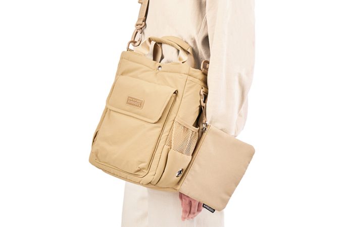 表生地に撥水加工を施した多機能お散歩バックが新しく登場。軽くて収納力があり、汚れもさっと拭き取れます。2WAYショルダー仕様で快適に持ち運びでき、ボトルポケットなど多彩な収納でお散歩をサポートします。