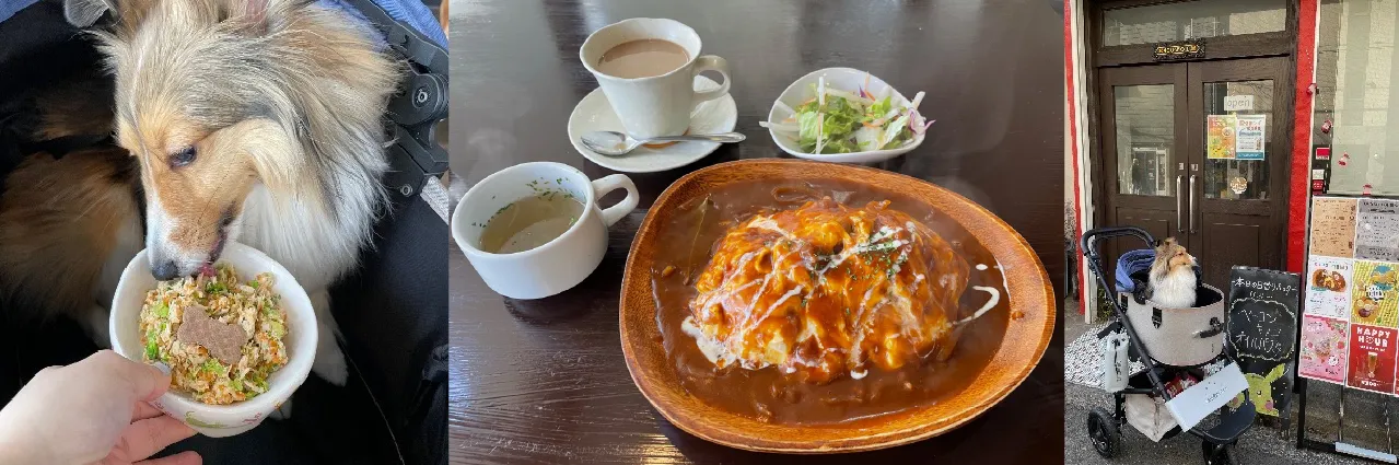 大きなオムライスとわんちゃん用ごはんを並べて、一緒にランチを満喫しました🍴